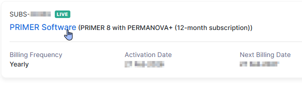 - Click on the name (in blue) of the specific subscription item you wish to change ('PRIMER Software').