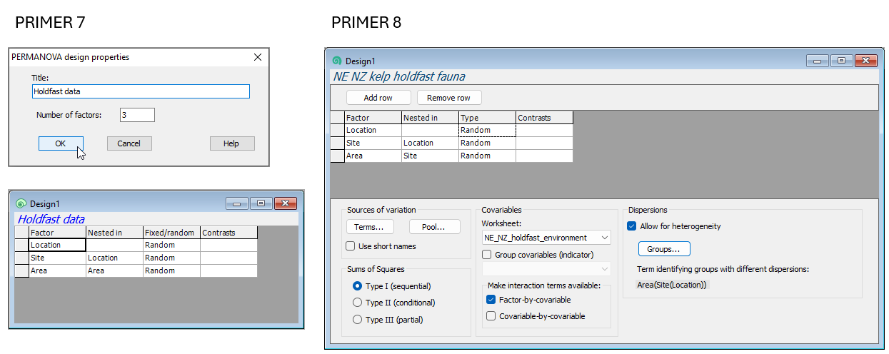 Fig. 5.1. Comparison of the details of the PERMANOVA Design file in PRIMER 7 (left) versus PRIMER 8 (right).